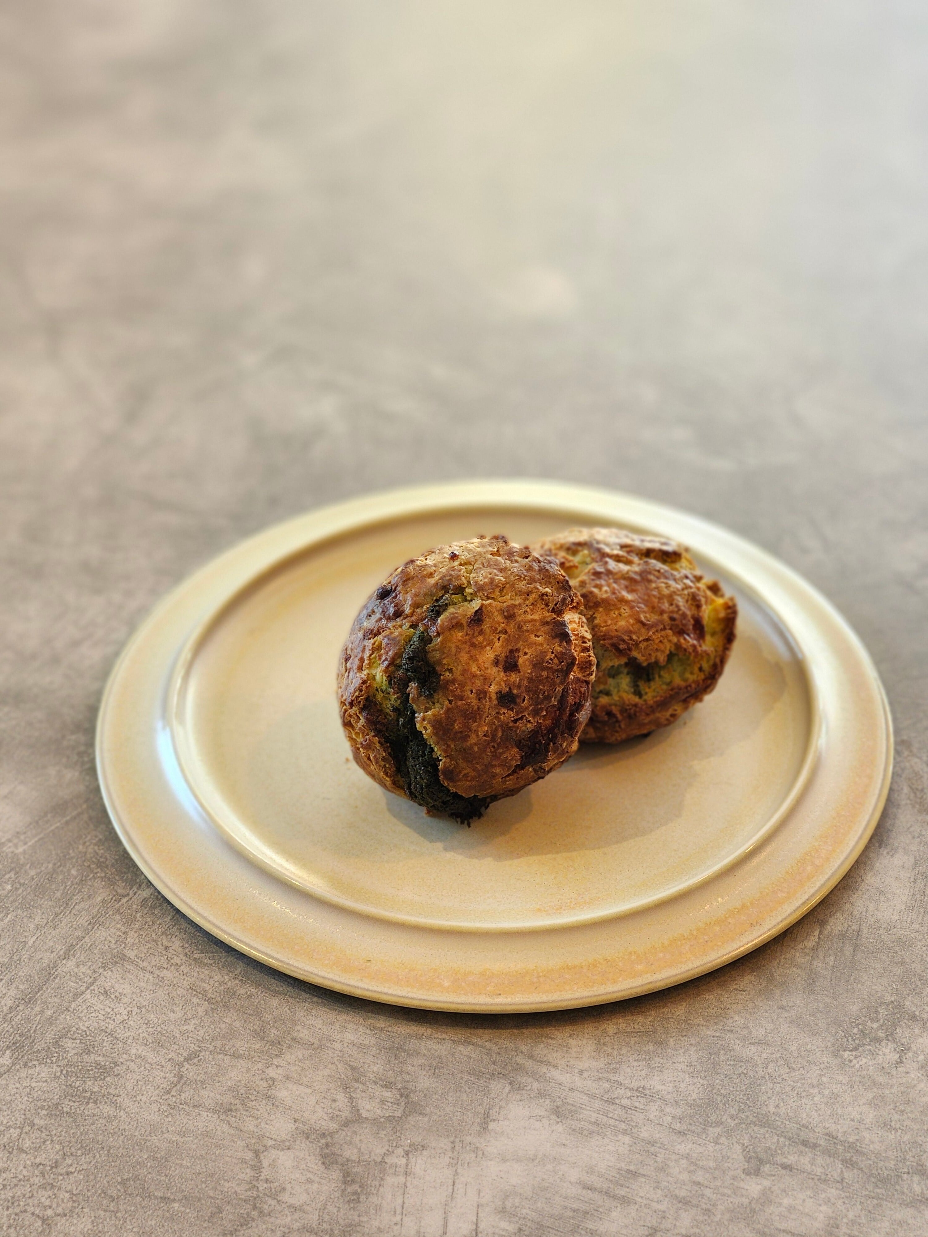 ブルギニョンバター(パセリ入りのガーリックバター)を、贅沢にフランス産発酵バターのみでスコーン生地の中に詰めました。